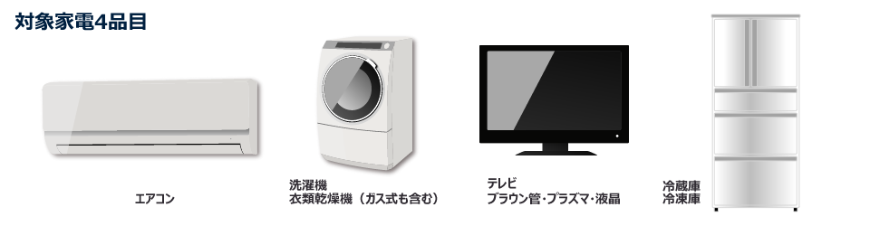 これらの4品目は小売業者による引取りおよびメーカー等(製造業者、輸入業者)によるリサイクルが義務付けられ、消費者には廃棄する際の収集運搬料金とリサイクル料金を支払うよう、役割をそれぞれが分担し、リサイクルを推進することが義務づけられています。